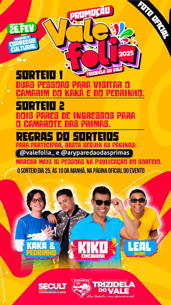 Tem uma promoção rolando para o Vale Folia de Trizidela do Vale. O evento será realizado dia 26 de fevereiro.
