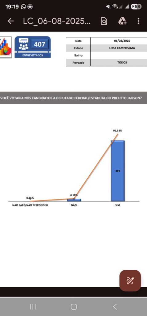 A pesquisa confirma a confiança da população nas ações da Prefeitura e reforça o empenho da atual administração em continuar promovendo desenvolvimento e bem-estar para os moradores de Lima Campos.
