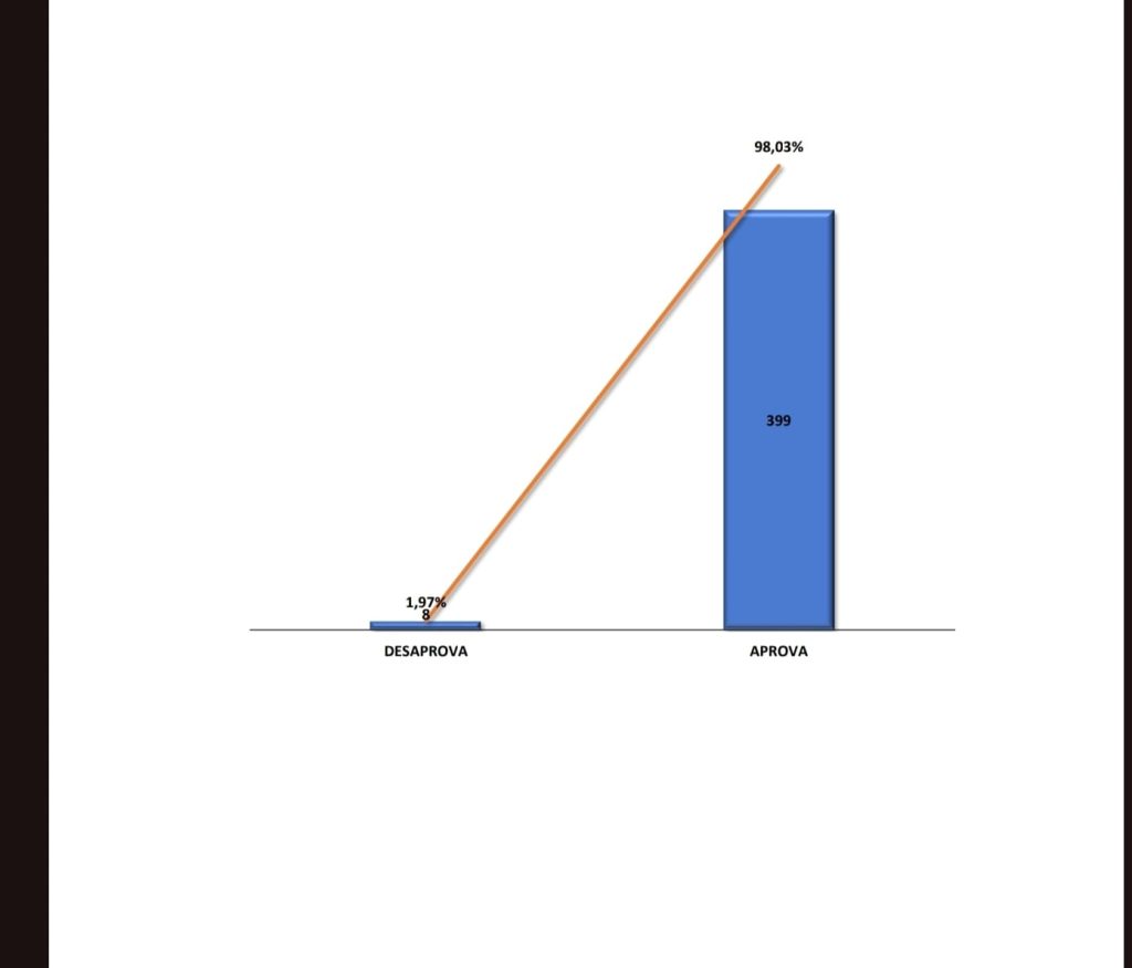 O levantamento ouviu 407 pessoas no município. Do total, 399 entrevistados (98,03%) afirmaram aprovar a administração, enquanto 8 (1,97%) disseram não aprovar e 7 (2,00%) não responderam ou não opinaram.