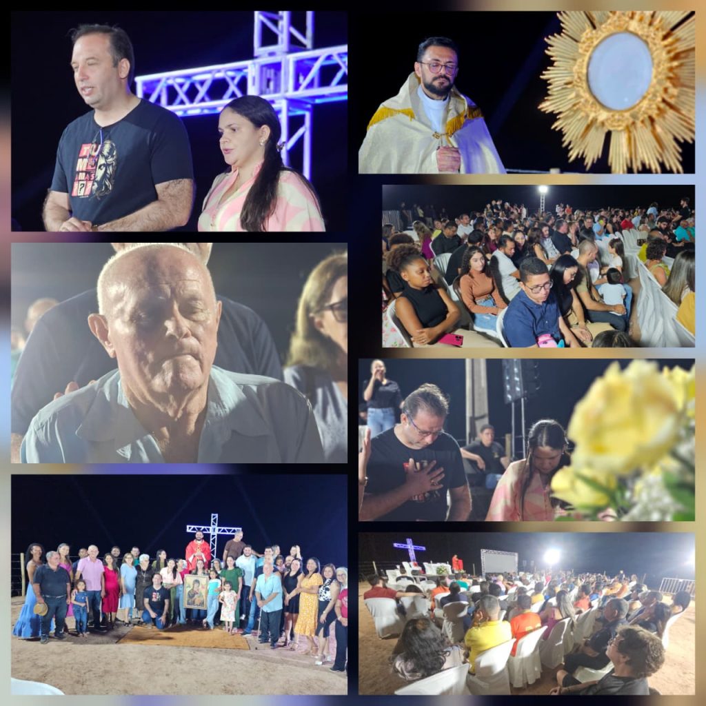Na noite da ultima sexta-feira, 29 de agosto, o empresário Gilmarcio Saturnino promoveu uma missa em ação de graças celebrada pelo Pe. Luis Portela no ponto mais alto de seu mais novo empreendimento, à Granja Saturnino, localizada no povoado Bom Jesus na zona rural de Lima Campos – MA. O ato religioso foi realizado em agradecimento às bênçãos alcançadas nos negócios e também na vida familiar.