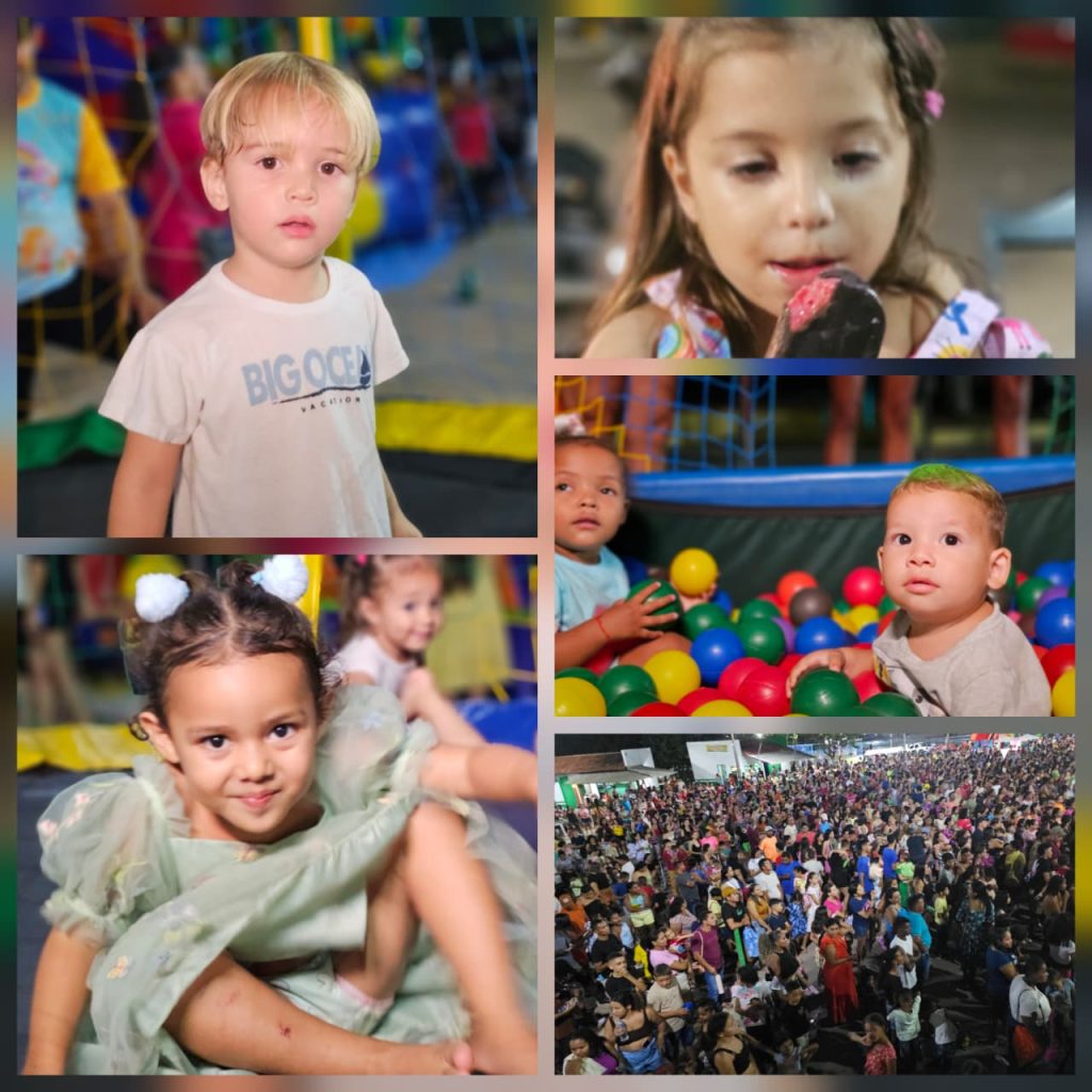 A festa aconteceu na Praça de Eventos, que se transformou em um grande espaço de lazer com brinquedos infláveis, brincadeiras tradicionais, algodão-doce e diversas guloseimas.
