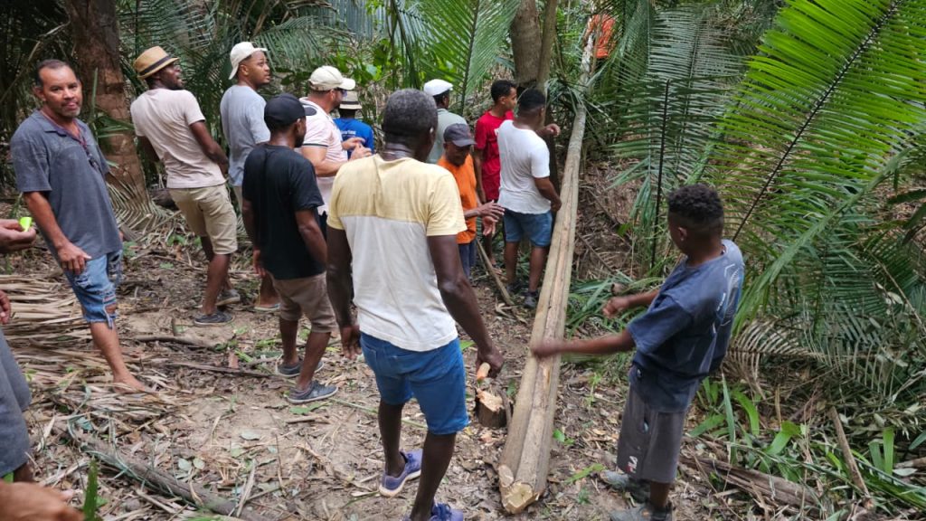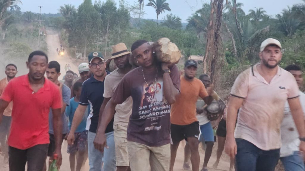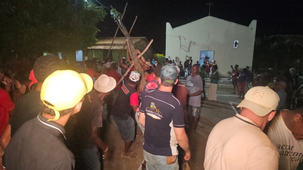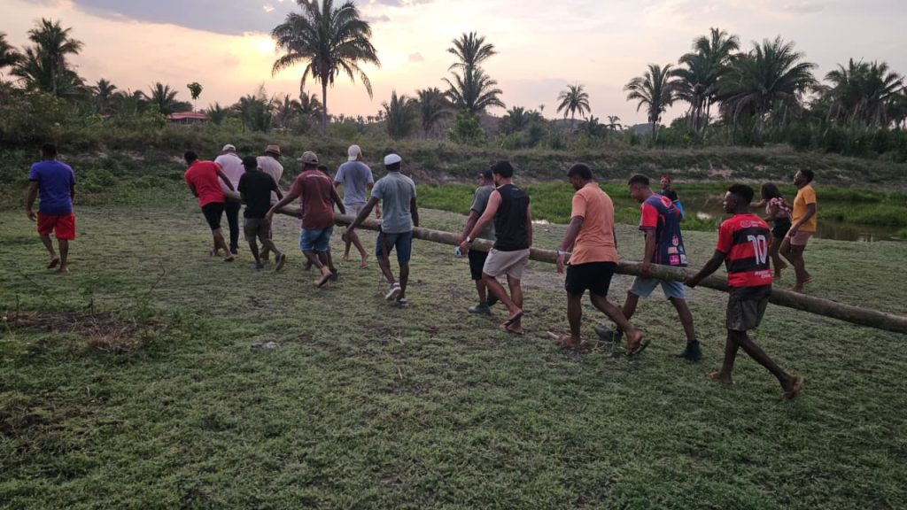 A tradição envolve um percurso simbólico: homens e mulheres caminham cerca de 5 quilômetros mata adentro para escolher e cortar a árvore que será transformada em mastro. O grupo abre caminho até a estrada e, em seguida, retorna ao povoado carregando a madeira em clima de festa, cânticos e devoção.